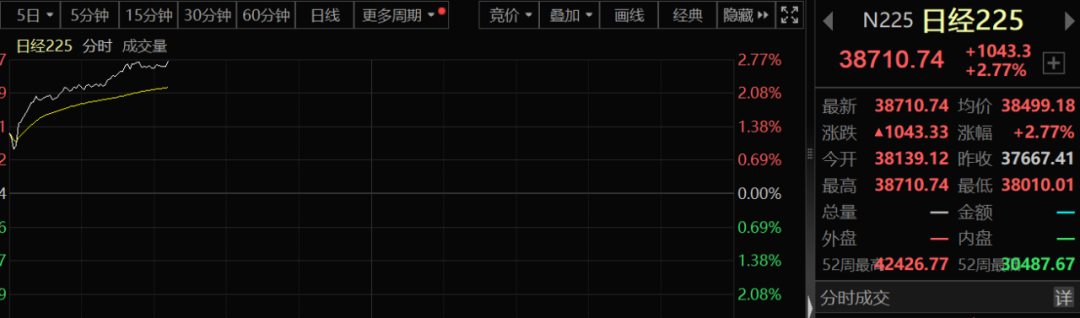 亚太股市大反攻来了。在上周大跌之后,今天早盘,亚太市场显得异常兴奋。日经225指数大幅拉升,一度狂飙超2.7%。