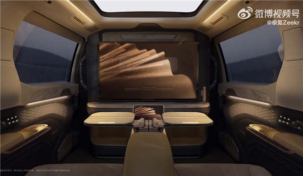 车内配备43英寸4K云端智慧屏,支持多种设备投屏,满足商务和娱乐需求。